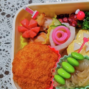 花しゅうまいとお花ウインナー海苔巻きのお弁当 ようこそ わらび家へ
